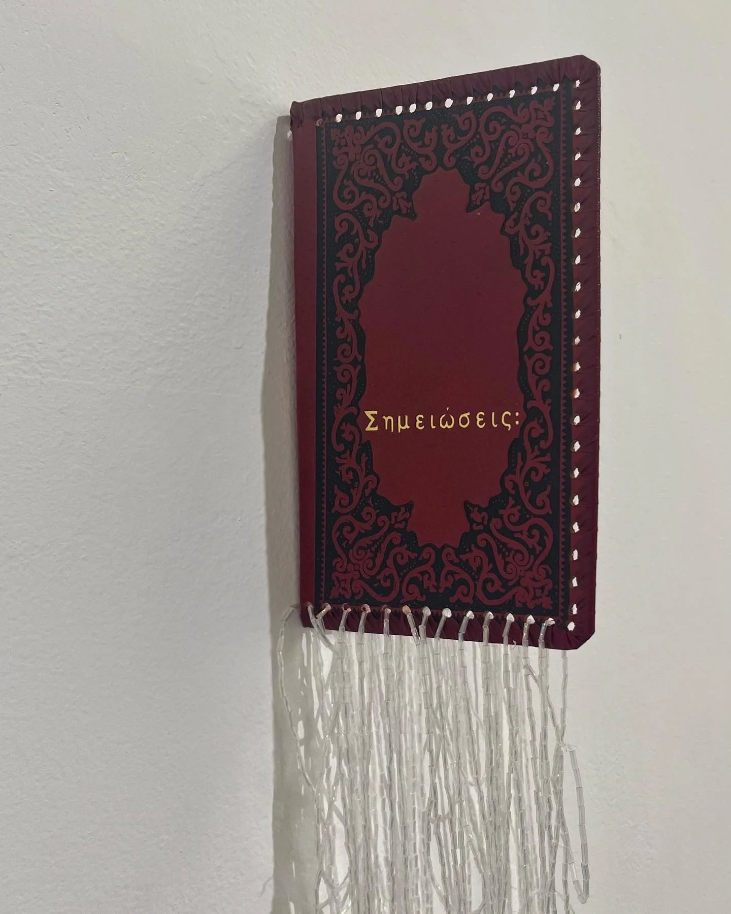 Remnants of a bitter-sweet goodbye, 2023 ,Found object, beads, fishing net, Dimensions Variable